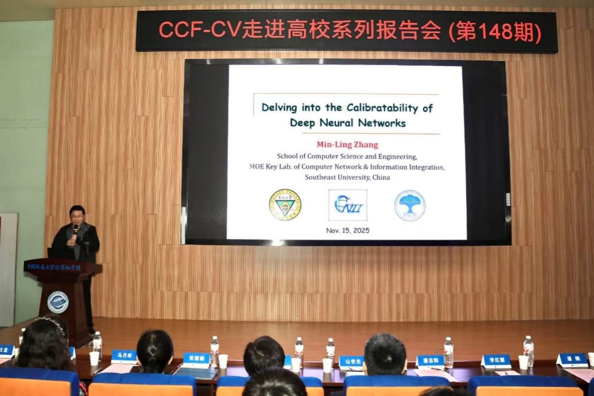 在学术报告环节,多位国内顶尖专家学者分享了前沿研究成果:东南大学张敏灵教授以《深度神经网络的可校准性》为题,介绍了团队在提升模型可校准性方面的最新研究进展,深入剖析了现有方法如何影响模型的事后校准潜力,并提出了兼顾性能与可校准性的新型训练方法。