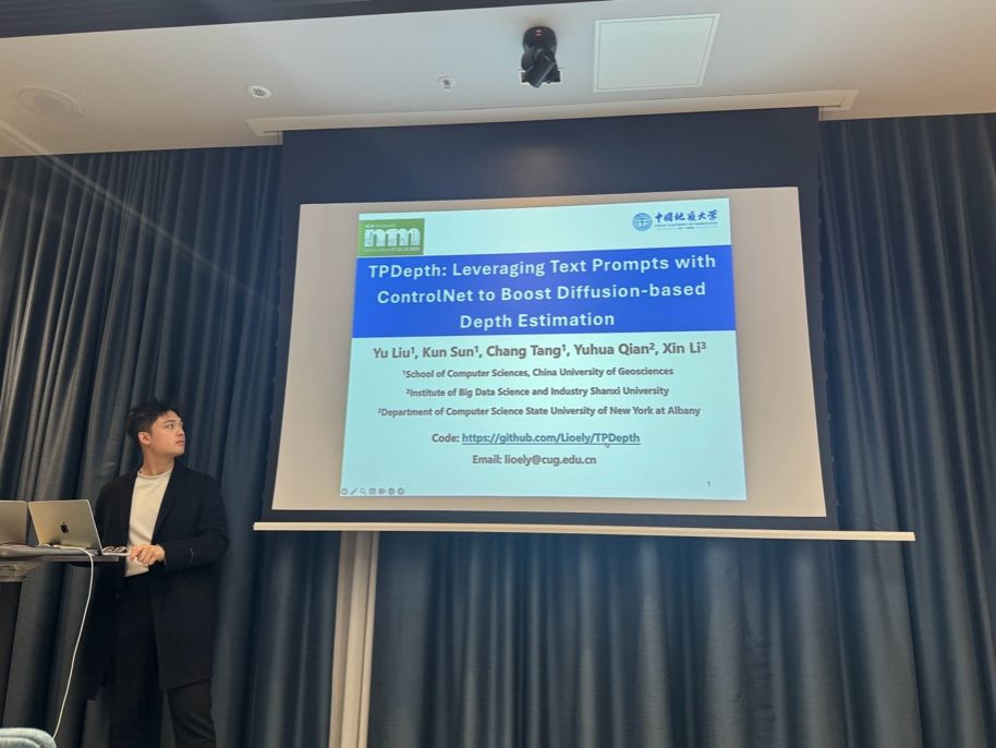 2025年10月27日至31日,第33届国际多媒体学术会议(ACM International Conference on Multimedia,简称ACM MM)在爱尔兰都柏林举行。十大买球官网智能科学与技术系孙琨老师指导的硕士研究生刘昱同学参加本次会议并口头宣读了他的论文《TPDepth: Leveraging Text Prompts with ControlNet to Boost Diffusion-based Depth Estimation》。