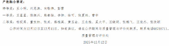 近日,学校质量管理与评价处公布了《关于首届教学质量文化节特色课程教案评选结果的公示》,十大买球官网彭雷老师的《算法设计与分析》教案获产教融合赛道特等奖,张夏林老师的《应用开发实习》教案获产教融合赛道一等奖;王媛妮老师的《Python语言程序设计》教案获思政课与课程思政赛道一等奖,李程俊老师的《并行计算》获思政课与课程思政赛道二等奖。