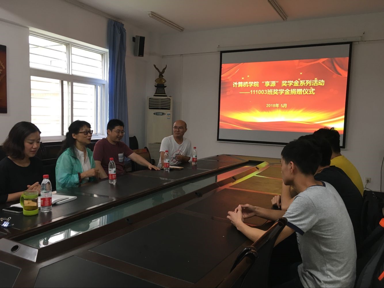 5月23日下午,十大买球官方网站“享源”奖学金系列活动之111003班奖学金捐赠仪式在北一楼顺利举行。111003班班主任罗良慧,111003班校友丁文秀(现为湖北省地震局高级工程师),111003班校友龚文引(现为十大买球官方网站教授),十大买球官方网站党委副书记孙莉出席此次捐赠仪式。