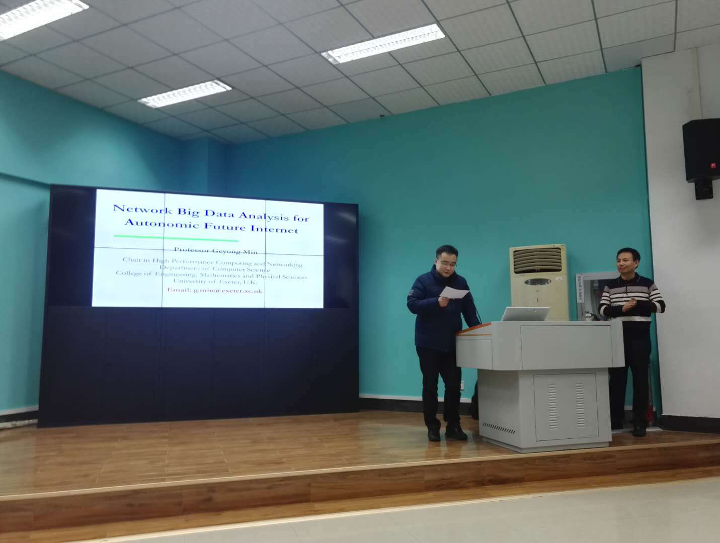 1月2日,应十大买球官方网站院长王力哲教授的邀请,英国Exeter大学(计算机学科首席教授)闵革勇教授来院访问,并做了题为“Network Big Data Analysis for Future Intelligent Internet”的学术报告。闵革勇教授在计算机/通信学科的IEEE与ACM国际顶级期刊上发表学术论文140余篇,多次获得会议最佳论文奖,现任6个国际期刊的编委(含计算机学科顶级国际期刊IEEE Transactions on Computers),18个国际期刊专刊的编辑,先后担任了18个国际会议/研讨会的大会主席和程序委员会主席,80多个国际学术会议的程序委员会委员,并在多个国际学术会议与研讨会上做大会特邀主题报告。学术报告在王力哲教授的郑重介绍下正式开始。