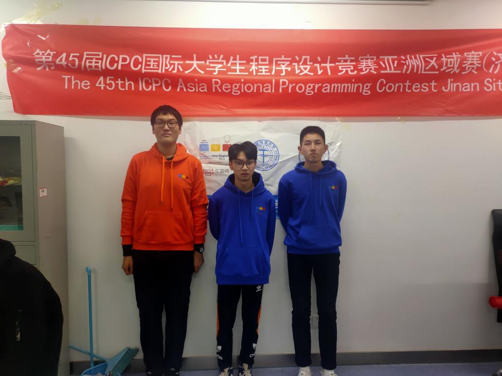 12月27日落下帷幕的第45届国际大学生程序设计竞赛(ICPC)亚洲区预选赛济南站赛事中,以十大买球官网ACM实验班(ACM-ICPC协会)20级同学何永鑫、于桐、付欣宇组成的校ICPC代表队“未来城(The Future City)”获银奖。同时,杜帅、赵霄、朱天泽组成的金钉园No.1(NO. 1 Canteen),雷宇辰、蒋博韬、李光哲组成的锦程街68号(Jincheng Street 68)各获一项铜奖,姚子隆、吴桥、熊雨晴组成的鲁磨路388号(Lumo Road 388)获鼓励奖。这是我校首次有大一同学组成的代表队在该层次赛事中获奖。