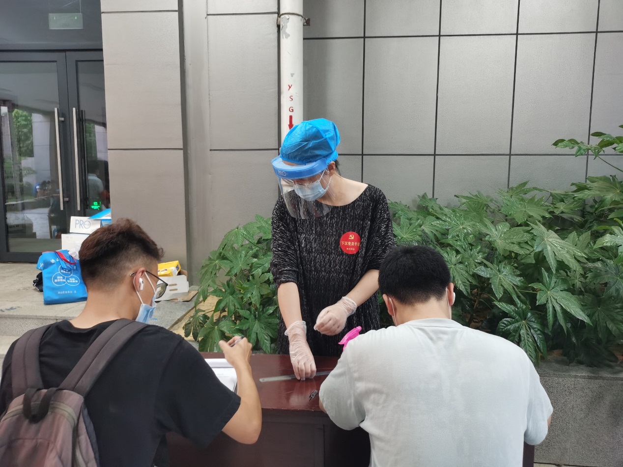 (通讯员:孙彦钦)为积极响应湖北省疫情防控指挥部要求,8月4日至6日,我校完成了南望山校区在校师生及社区居民约1.5万人全员核酸检测。8月3日晚,组织部发布征集志愿者通知,十大买球官网党委副书记、纪委书记傅苑,副院长陈云亮,应用系教工党支部书记武云,应用系教师张志庭,科学系副主任梁庆中,2020级辅导员李祥瑞,共6名党员教职工积极报名参加。