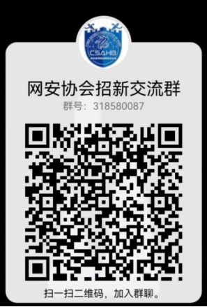演练的成功离不开背后的组织。买球赛十大平台网络空间安全协会成立于2018年,曾代表学校获得全国信安大赛网络攻防比赛二等奖的好成绩。社团面向全校本科生,带领社团成员学习网络安全相关知识,培养网络安全意识,提高网络安全实战技能。目前社团的5名核心成员中,除了4名十大买球官方网站的学生外,还有1名来自资源学院的学生。社团将在下学期开展各类攻防演练技术沙龙,组织模拟CTF夺旗赛,社团老师还将提供攻防题目供成员练习。除了拥有此次同学校网络中心合作的攻防实战机会以外,还将有参加全国CTF竞赛、湖北省护网行动、以及前往深信服科技总部进行观摩并参加攻防演练的机会。对网络安全和网络攻防感兴趣的同学,可扫码加群,我们期待你的加入!