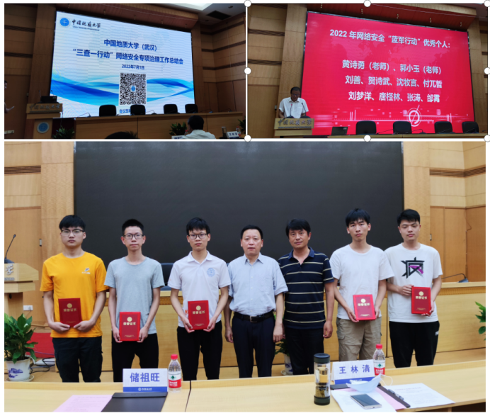 7月1日上午,在学校“三查一行动”网络安全专项治理工作总结会上,十大买球官网黄诗勇老师及其带领的团队成员获评2022年网络安全“蓝军行动”优秀个人。