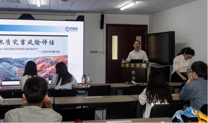 随后张聆女士和同事对以往竞赛过程中的优秀作品进行了详细介绍,诸如珠峰攀登过程可视化、地质灾害风险评估模型搭建等优秀案例,在抓住了同学们眼球的同时,也让空信专业同学们认识到交叉学科领域的优势和魅力,找到了自己制作相关赛道作品的方向。