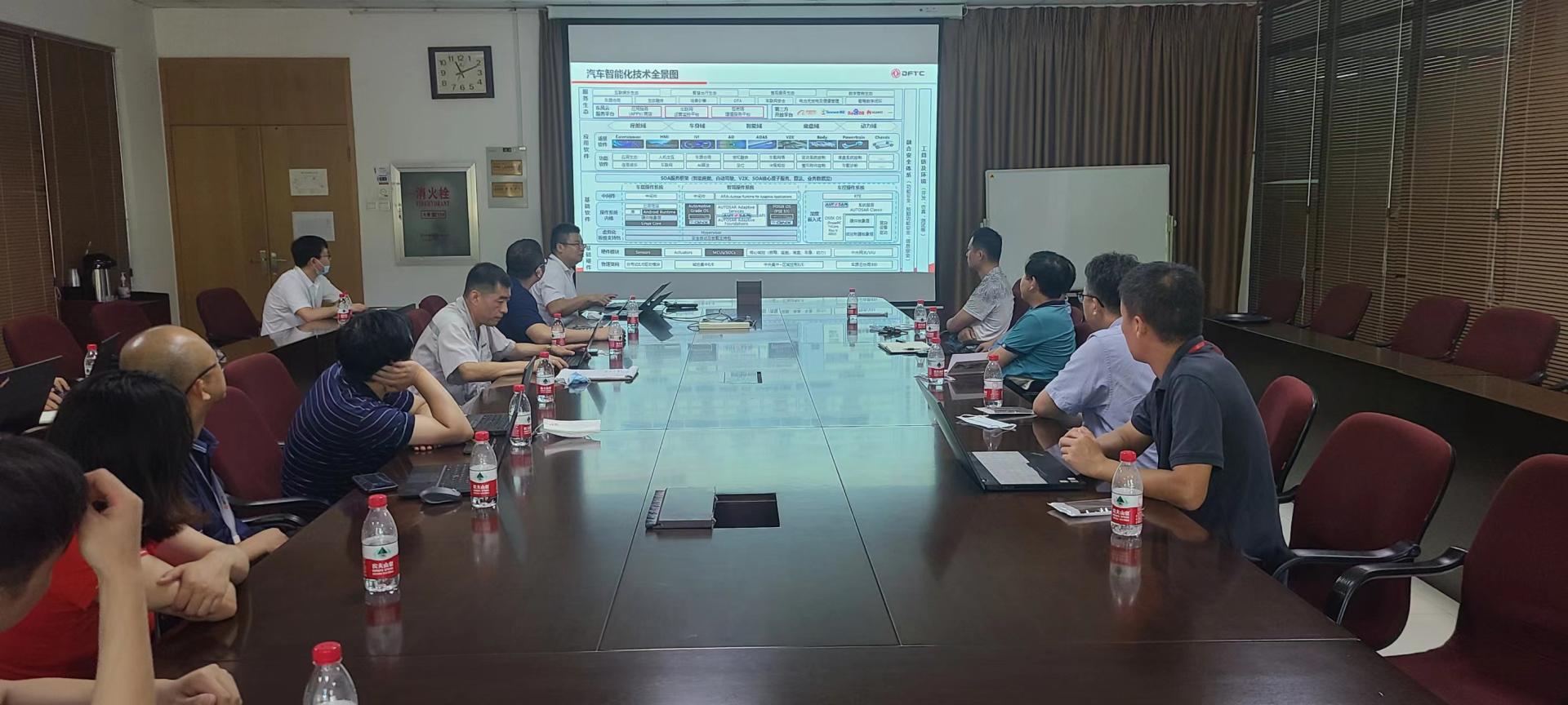 东风汽车集团公司智能软件中心对学院一行人员的到访表示热烈欢迎。刘洛川介绍了东风汽车公司及集团技术中心总体情况和东风公司在校企合作方面的部分案例和政策;周海鹰介绍了智能软件中心情况,并详细介绍了东风技术中心在电子电气架构、基础软硬件、国产芯片、智能驾驶、智能座舱及云平台等方面的先进技术;申中一介绍了东风集团在智能化领域的人才缺口、人才招聘政策及实习生需求情况等。