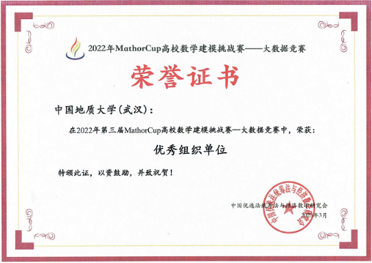 2023年3月13日, 2022年第三届MathorCup高校数学建模挑战赛——大数据竞赛落下帷幕。十大买球官方网站组织队伍参加本次比赛,并取得了一等奖5项、二等奖3项以及三等奖8项的优异成绩,同时我校也被授予优秀组织单位奖。