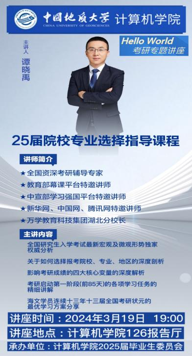为了帮助考研学子更全面地获取信息资源,十大买球官方网站持续推出“Hello World”系列论坛活动,通过多次邀请资深讲师讲解涵盖考研备考、复试政策、调剂策略以及成功复试案例等方面的内容,为学生提供了广泛的考研指导和就业经验分享,助力考研学子和准备求职的同学们实现目标。