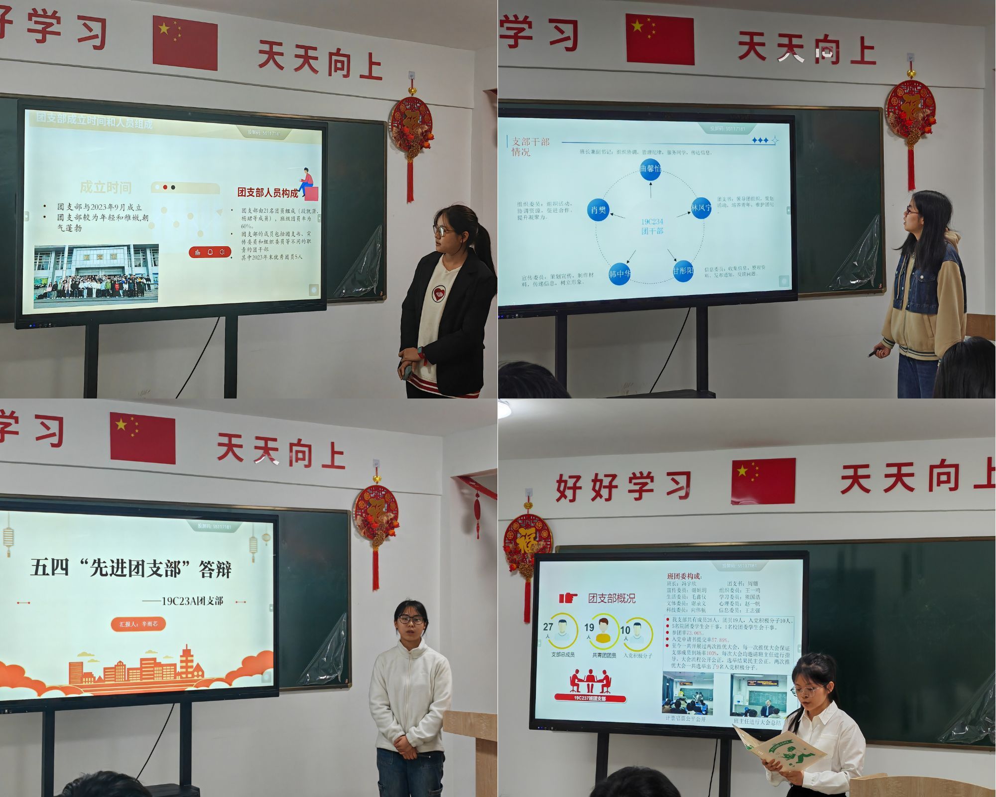 各支部结合专业特色与实际情况,从支部建设、支部活动、支部荣誉及未来展望等方面,充分展示了过去一年的工作成绩和支部风采,彰显了奋发向上、追求卓越的青春力量,呈现出一幅幅生动的团支部画卷。与此同时,现场的评委们也专心致志地对各团支部的答辩进行细心聆听并给予评议,针对各团支部的答辩情况进行提问与现场打分。