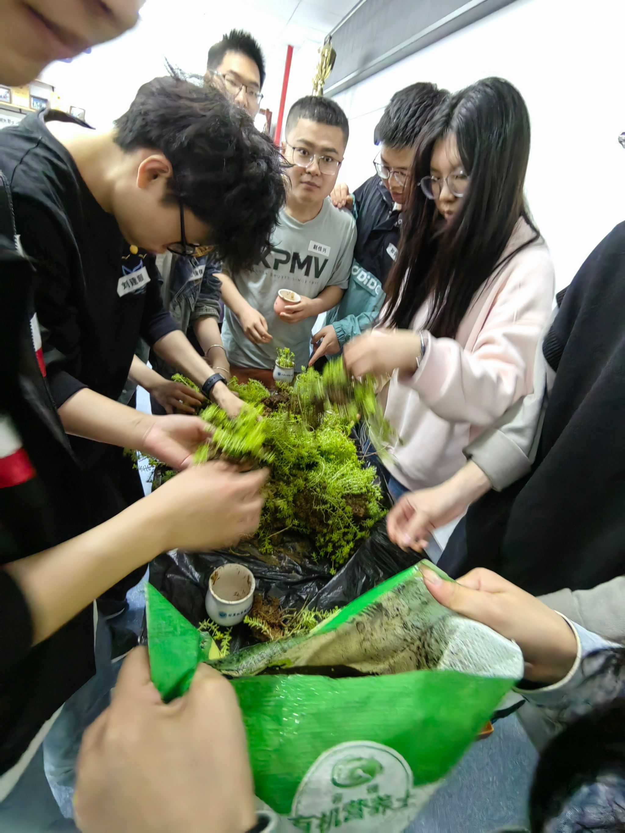 劳动理论学习后,大家来到学院三楼平台,干劲十足的动起手来,气氛融洽且热烈。同学们互相配合,挖树苗、拔小草、铲青苔、洗容器、种植物,在雨中体会劳动的乐趣,在实践中体会种植的快乐。