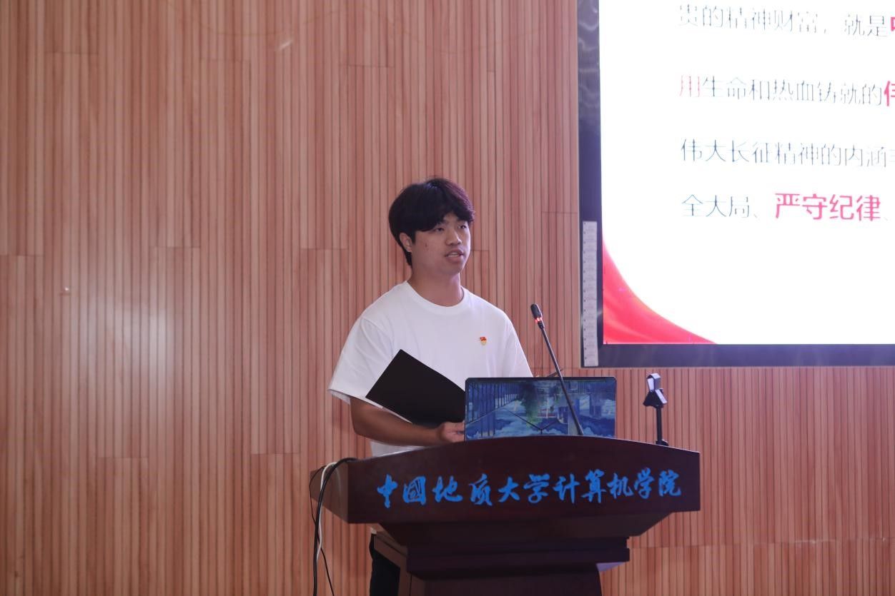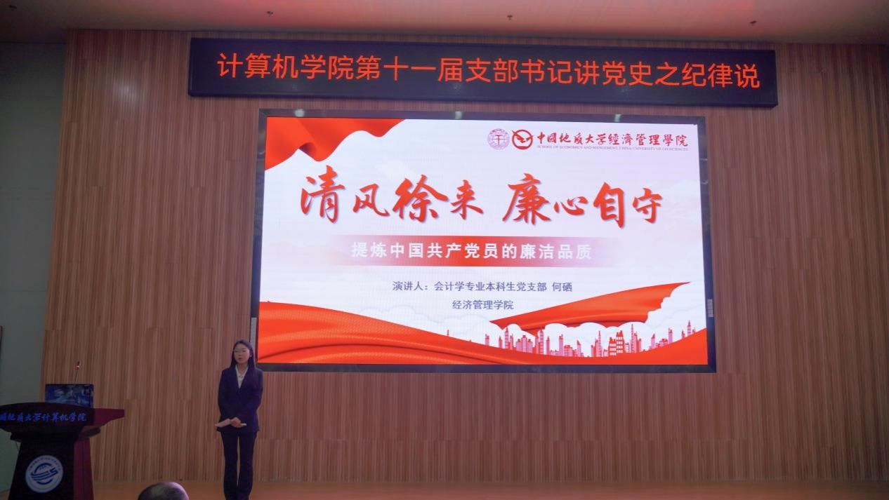 活动在雄壮的国歌声中拉开帷幕。学生党支部书记率先登场。电子信息第三党支部朱国强以刘邓大军的严明军纪为例,强调了纪律在军队建设中的重要作用。本科生信安党支部郭鹏顺则从新民主主义革命时期的党纪建设出发,强调了坚守初心、严明纪律的意义。本科生空信党支部延笑宇等多名成员以“党的纪律:烈烈清风”为题的诗歌朗诵,声情并茂地展现出对党廉政建设的歌颂。本科生计科第一党支部王诗敏则以延安廉政的故事为蓝本,深入剖析了党在推动廉政反腐方面的必要性和坚定决心。电子信息第二党支部潘灿通过讲述郭明义的故事,展现了廉洁奉公、无私奉献的崇高精神。电子信息第一党支部胡长浩深刻阐述了铁纪在长征这一伟大的历史事件中的关键作用。在十大买球官方网站空间信息工程党支部与经济管理学院生态文明研究生样板党支部成员的精心编排下,以一场独具特色的话剧将现场气氛推向了高潮,生动诠释了“亲民爱民、艰苦奋斗、科学求实、迎难而上、无私奉献”的“焦裕禄精神”。