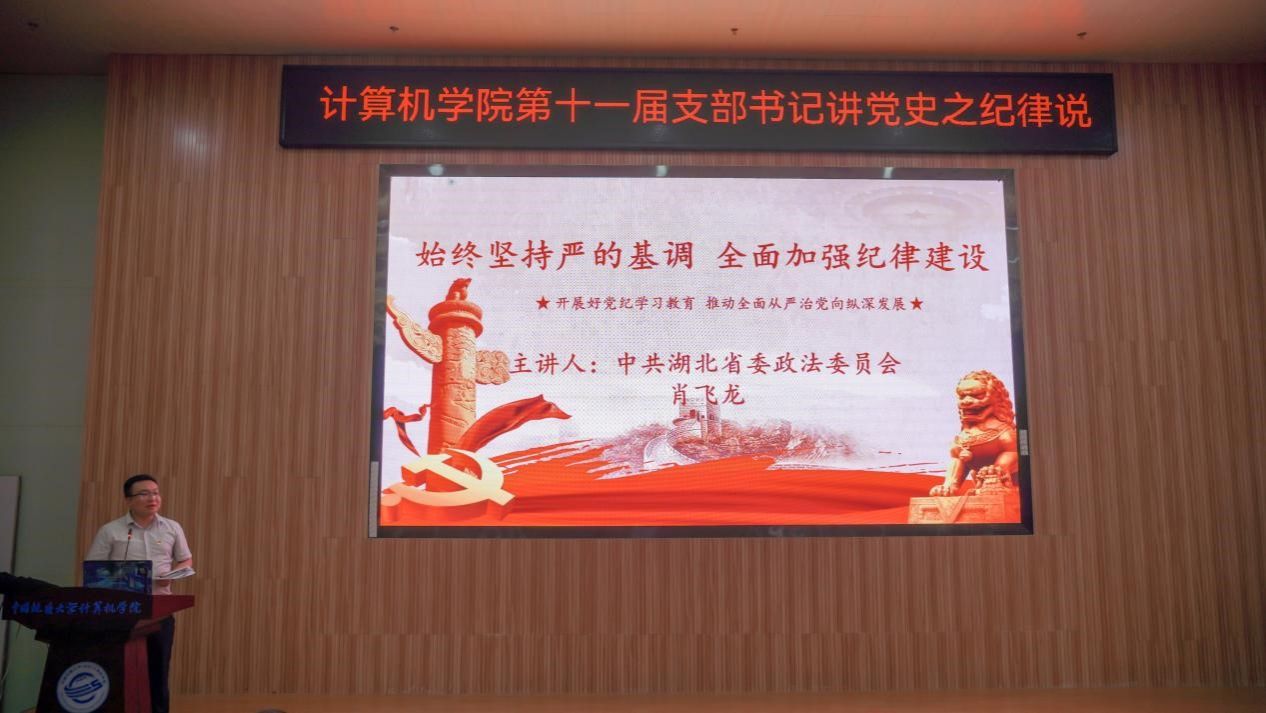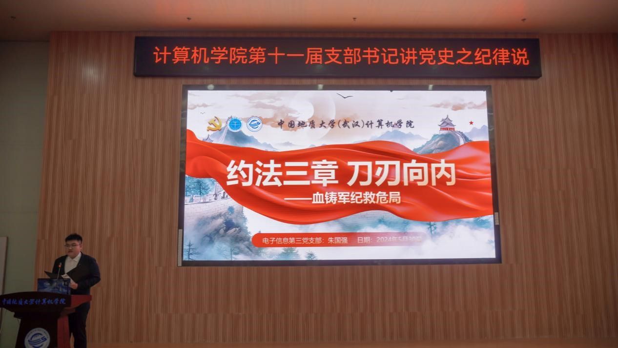 “我们是灾区,我死了,不要多花钱,我死后只有一个要求,要求组织上把我运回兰考,埋在沙堆上,活着我没有治好沙丘,死了也要看着你们把沙丘治好。”......舞台上,十大买球官方网站空间信息工程党支部和经济管理学院生态文明研究生党支部的党员代表们生动演绎着《焦裕禄》,他们以一场独具特色的话剧将现场气氛推向了高潮,生动诠释了“亲民爱民、艰苦奋斗、科学求实、迎难而上、无私奉献”的“焦裕禄精神”。5月30日下午,十大买球官方网站在学院126报告厅举办第十一届支部书记讲党史之纪律说暨党员骨干集中培训活动。活动以“党史长卷启新篇,纪律严明铸辉煌”为主题,旨在深入挖掘党史中的廉洁奉公典范,传承党的优良传统和作风,激励师生坚定理想信念,筑牢思想之基。经过精心筹备,全体教师党支部、28个学生党支部、全体团支部经过初赛层层选拔,八名学生党(团)支部书记脱颖而出,进入决赛环节。同时,获奖的教师党支部书记代表马钊老师、校友代表肖飞龙以及十大买球官方网站党委书记李国昌讲授了精彩的示范党课。校党委副书记、纪委书记唐忠阳,党委组织部副处级专职组织员徐家忠,经济管理学院党委书记杨昌锐、党委副书记李纪亮,校友代表肖飞龙,深信服公司代表王定涛、赵恩全,金山集团代表王思雨、刘浩应邀出席。十大买球官方网站党委书记李国昌、党委副书记林小艳、辅导员谭文博和进入复赛的学生党、团支部代表现场观摩。学生党建办公室叶岭岚担任活动主持。
