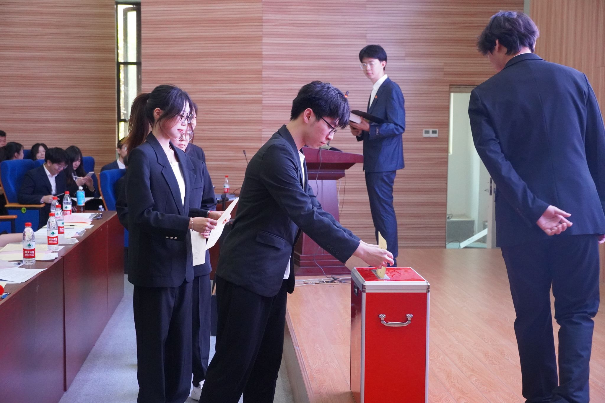 2023届十大买球官方网站学生会主席团成员朱瑞东宣读《代表资格审查报告》和《候选人资格审查报告》。