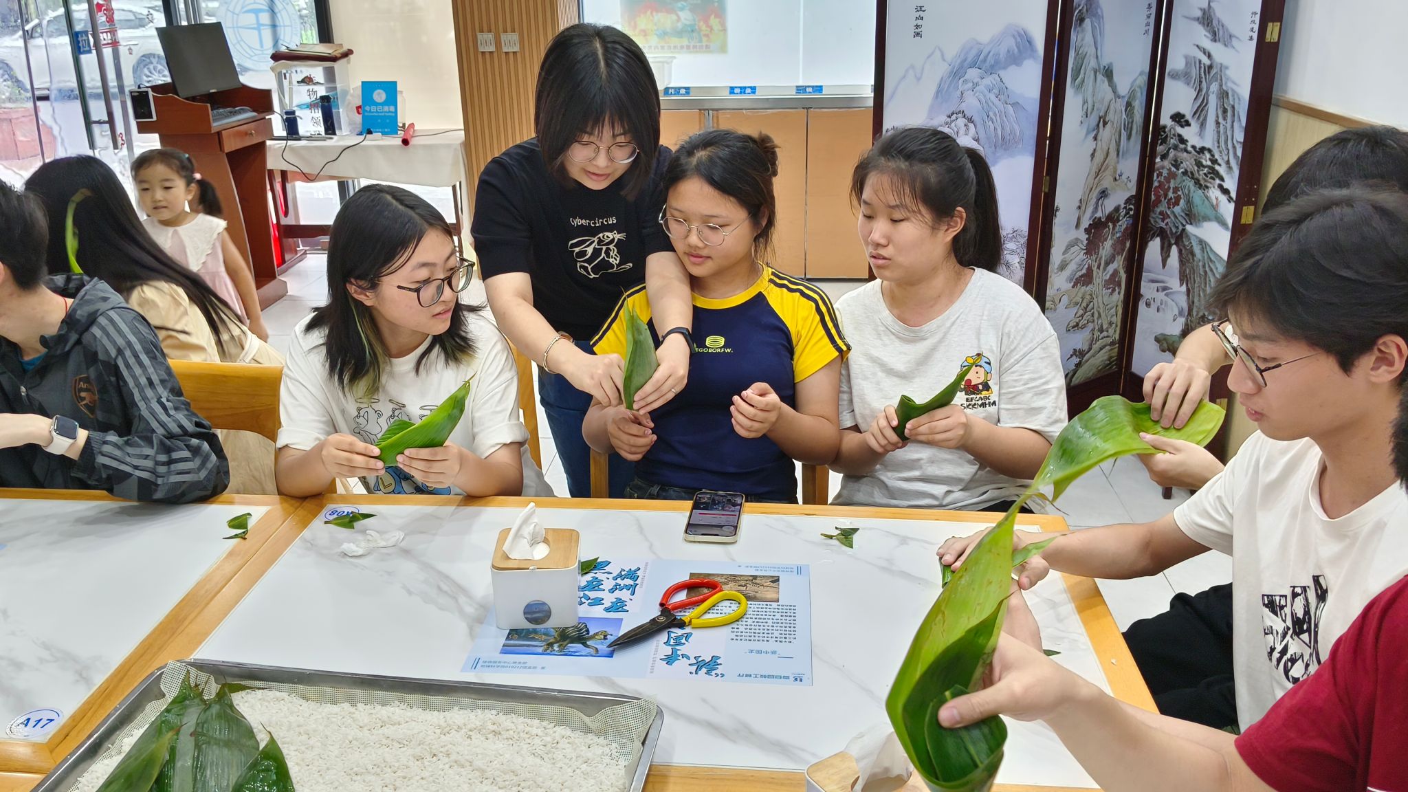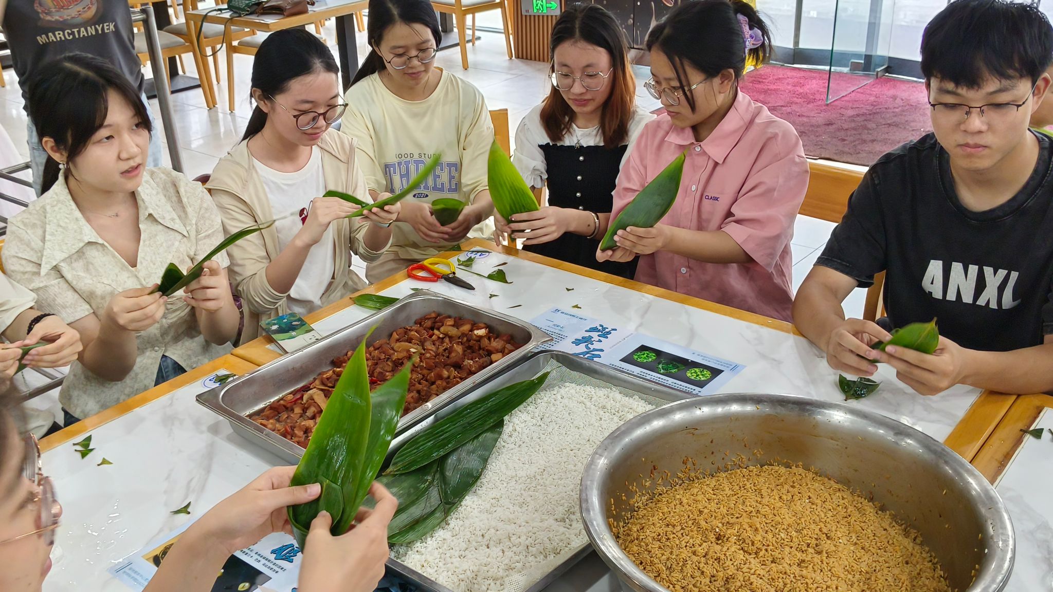 为进一步弘扬和培养爱国主义精神,传承中华优秀传统文化,贯彻劳动育人精神,丰富大学生的校园文化生活,6月10号下午,十大买球官方网站与接待服务中心党支部在震旦园教工餐厅共同开展“迎端午·包粽子”劳动教育活动。十大买球官方网站党委副书记、纪委书记林小艳,团委书记王太茂,团委副书记闫维蓉,辅导员刘佳丹及2023级30余名学生参加,活动由接待服务中心党支部书记吴华玉主持。