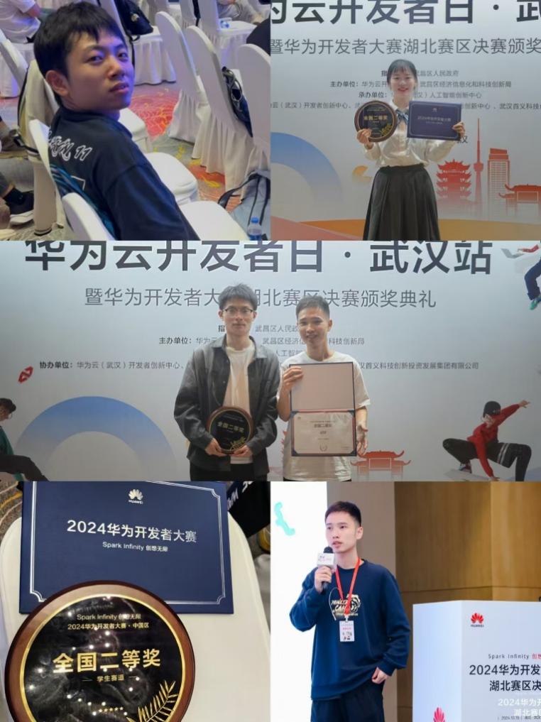 2024年10月15日,华为云开发者日·武汉站暨华为开发者大赛湖北赛区决赛颁奖典礼成功举办,十大买球官网计算机科学与技术专业的李航、夏嘉键、余雅琼、吴家豪等四人组成的“还好队”,获得了华为开发者大赛学生赛道全国二等奖。