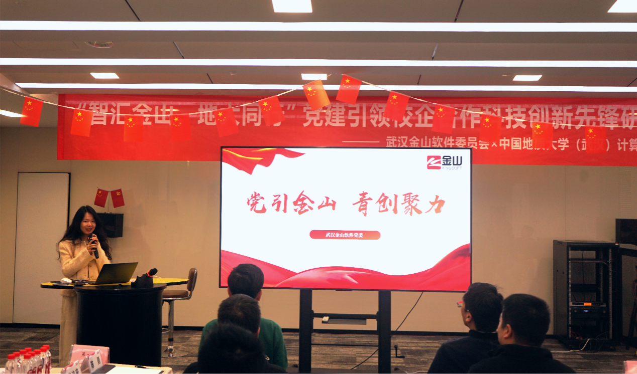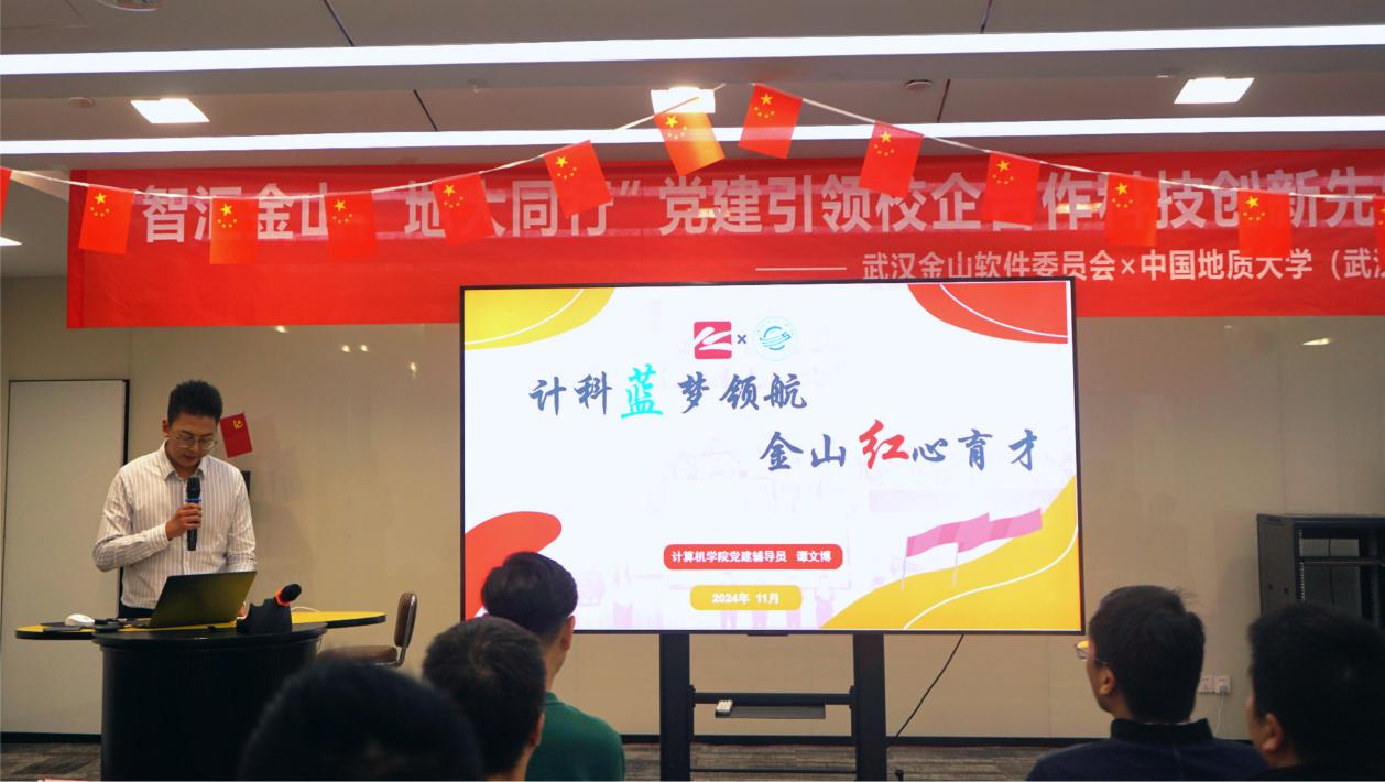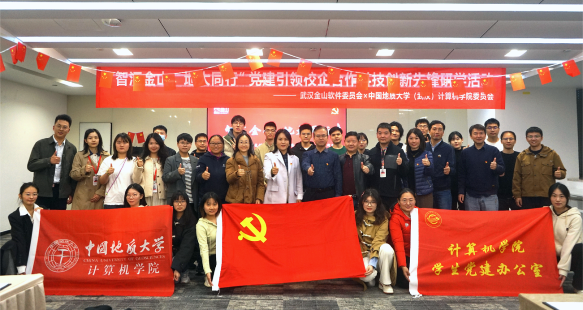 11月22日,院党委与武汉金山软件有限公司党委联合举办的 “智汇金山·地大同行”党建引领校企合作科技创新先锋研学行动暨研究生培养基地挂牌活动,在金山集团武汉总部举行。武汉金山软件党委书记张念、金山办公第三支部书记曹宗华及王思雨、刘浩、王佳慧、陈志增、赵志梦等职工党员,买球赛十大平台党委研究生工作部部长许德华,十大买球官方网站党委书记李国昌、党委副书记林小艳、教师党支部书记马钊、叶亚琴、武云、宋维静、孙琨、辅导员李欢欢、谭文博,以及部分学生党支部书记参加活动。