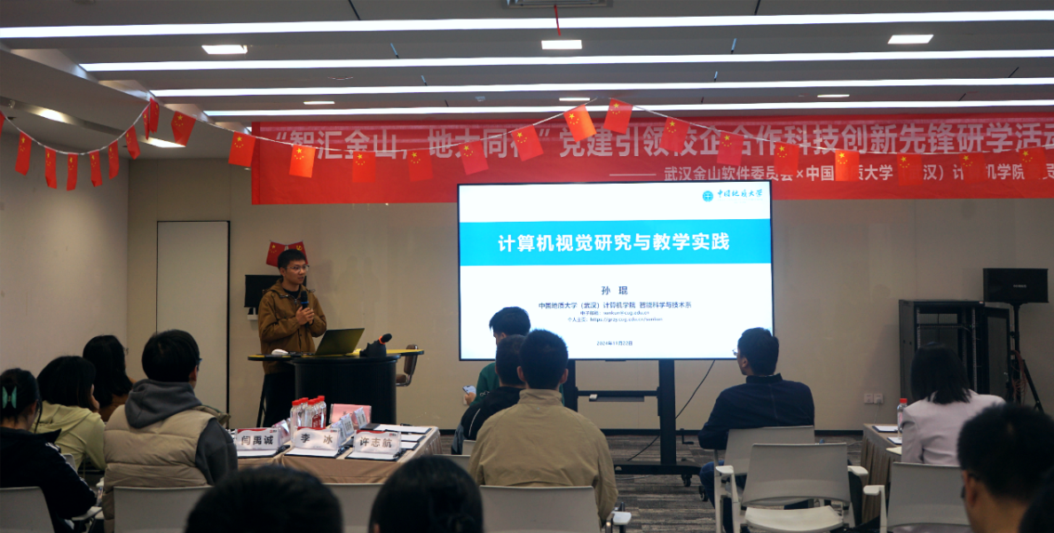 学院教师代表孙琨老师则分享了地大智能科学技术专业的科研成果和教学经验,报告了自己在图像特征匹配技术的科研进展和本研人才培养方面的经验,提倡学生与企业深入交流,以明确社会对人才的需求。