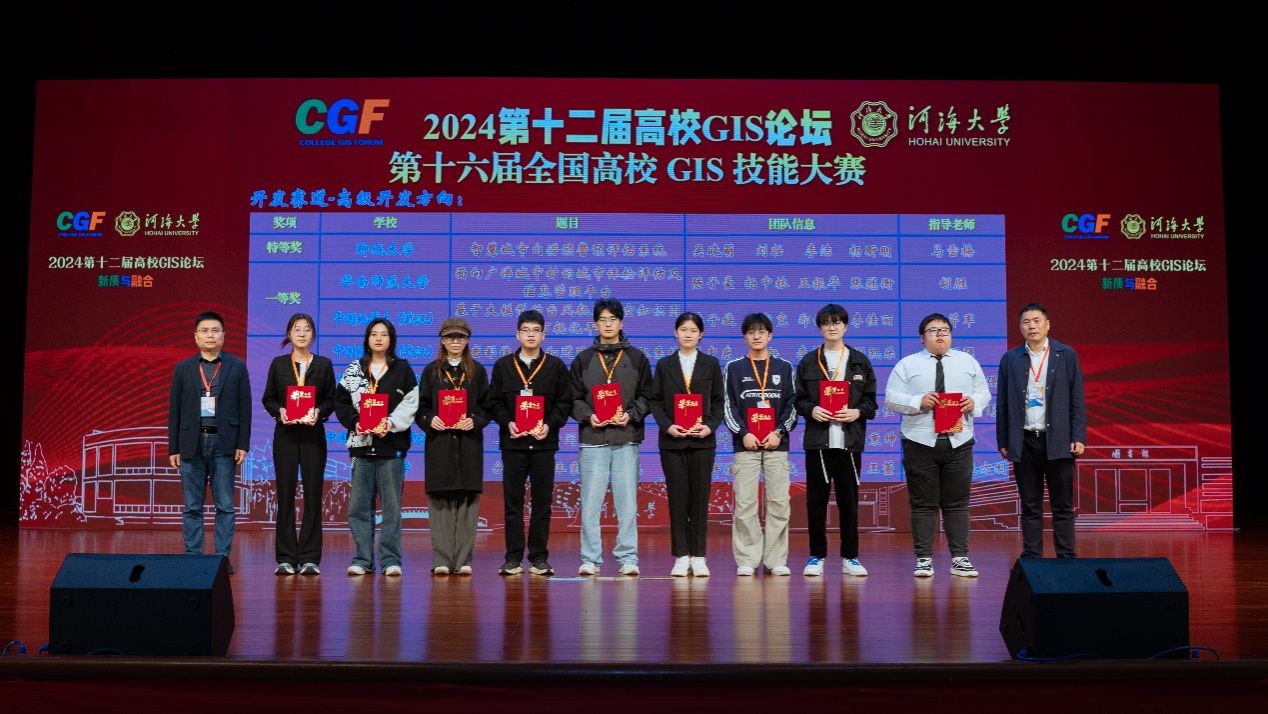 2024年11月1日,第十六届全国高校GIS技能大赛落下帷幕,十大买球官网谢忠教授团队的邱芹军老师和陶留锋老师指导的研究生李子旋、周宇宽、李佳丽、郑诗语四人组成的团队发挥出色,其作品荣获赛事一等奖。