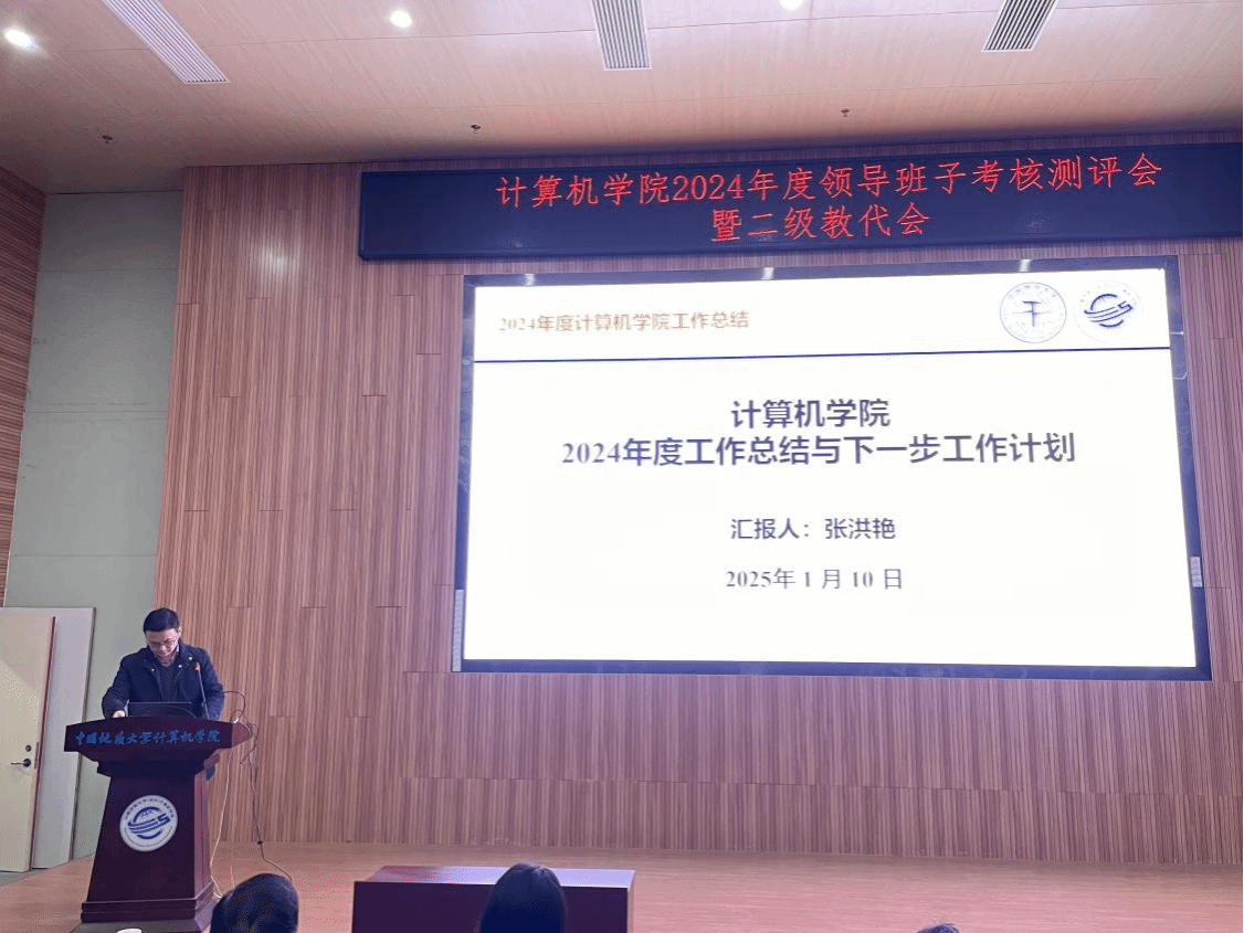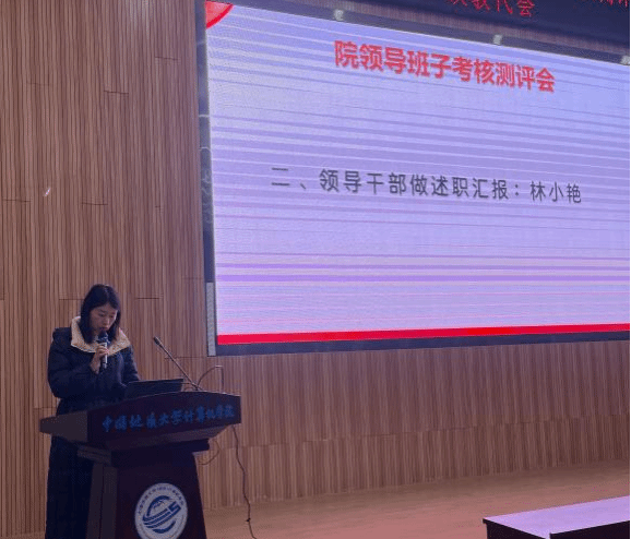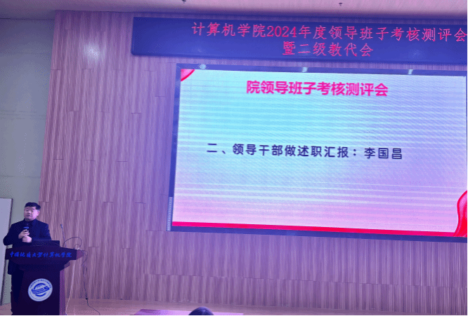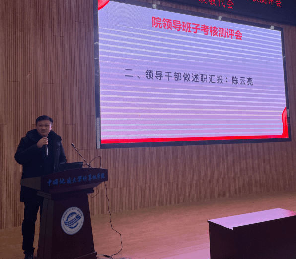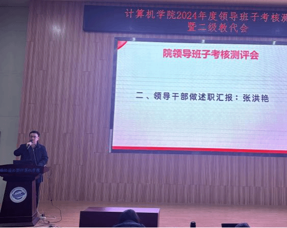 张洪艳院长代表院领导班子述职述廉。2024年,十大买球官方网站领导班子旗帜鲜明讲政治,不折不扣不抓落实,以“提质增效年”为主题,团结协作、务实创新、担当作为,继续带领全院师生抓发展、保平安、守规矩,推动学院各项事业取得明显成效。未来将进一步落实学院“十四五”事业发展各项任务,协同推进和落实一流计算机学科建设计划,完善体制机制,抢抓人工智能和计算机基础学科发展机遇,坚持问题导向和目标导向,全面贯彻落实学校《关于进一步深化改革 扎实推进教育强国建设地大实践的行动方案》各项任务。