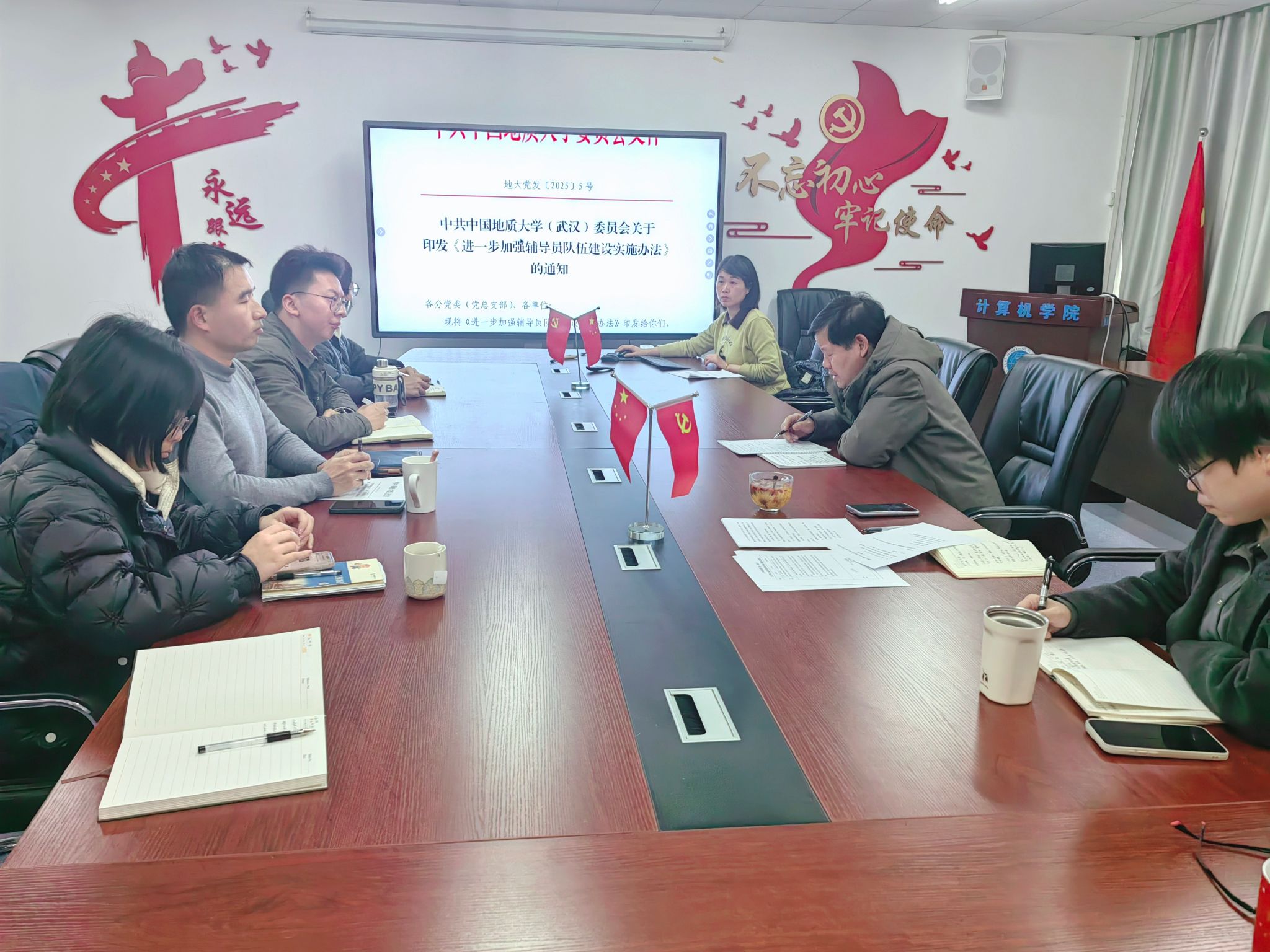 李国昌传达了全国高校辅导员队伍建设工作会议精神,进一步解读了《进一步加强辅导员队伍建设实施办法》。他强调,全体辅导员要充分认识到中央和学校加强辅导员队伍建设的重大意义,深刻认识新形势、新挑战、新要求,做到“定性、定位、定向、定编、定标、定格”有机结合。他表示,大家要认识到辅导员在实施新时代立德树人重大工程中的极端重要性,进一步明确职业定位,始终保持旺盛的斗争和拼搏心态,努力拓宽发展路径,聚焦主责主业实现专业化职业化专家化发展。他对大家提出五点希望:一是牢记“为党育人,为国育才”的初心使命,不断增强荣誉感和使命感;二是全面提升素质能力水平,为以后的发展奠定良好的基础;三是结合学校、学院和自身实际,科学谋划职业发展路径;四是聚焦主责主业,安安心心干好工作,干出水平、干出特色、干出亮点;五是团结协作,遵规守纪,自觉维护和展示学院良好形象。