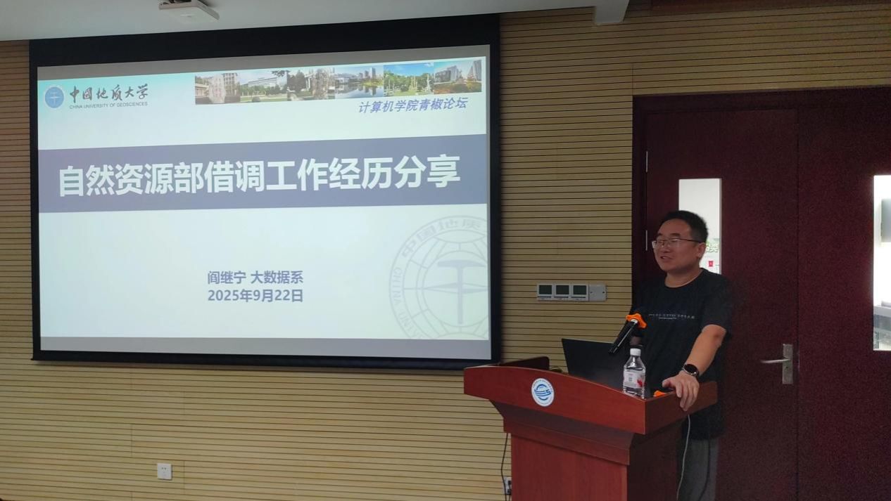 阎继宁老师接着汇报了在自然资源部借调期间的经历。2024年8月至2025年8月,阎老师借调至自然资源部科技发展司创新发展处,负责配合处领导完成创新平台管理、人才遴选、奖项申报以及自然资源科学普及工作,组织了“从山顶到海洋”自然资源科技成果巡展等重要活动,锻炼了从事科技管理工作的“会办文、会办会、会办事”能力,极大地开阔了个人视野,进一步明晰了个人从事的新一代信息技术教学、科研与服务国家自然资源监测应用的关系,为以后的科学研究、教书育人指明了方向。