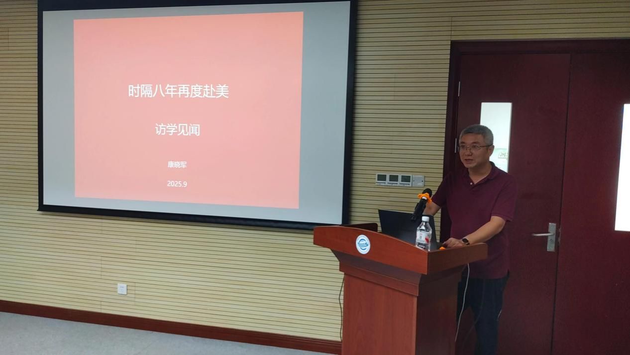 首先,康晓军老师做了“时隔八年再度赴美--访学见闻”的报告。康老师于2016年、2024年两次赴美,在East Carolina University(ECU)的物理系进行访学,师从XInHua Hu教授,从事计算机视觉领域的研究。具体研究内容主要是通过结合傅里叶变换的Transformer、重新设计的非对称双通道深度卷积网络,实现单细胞水平上对于癌症细胞的光学衍射图像进行精确的分类。康老师特别对比了对美国政治、经济的前后八年直观印象对比,从一些生活细节感受到中国出口美国产品从低端到科技含量不断提升的事实,增强了尽快尽多学习研究计算机领域课题的使命感。康老师还就国际情况变化下目标访问学校、导师及签证申请给出了建议意见。
