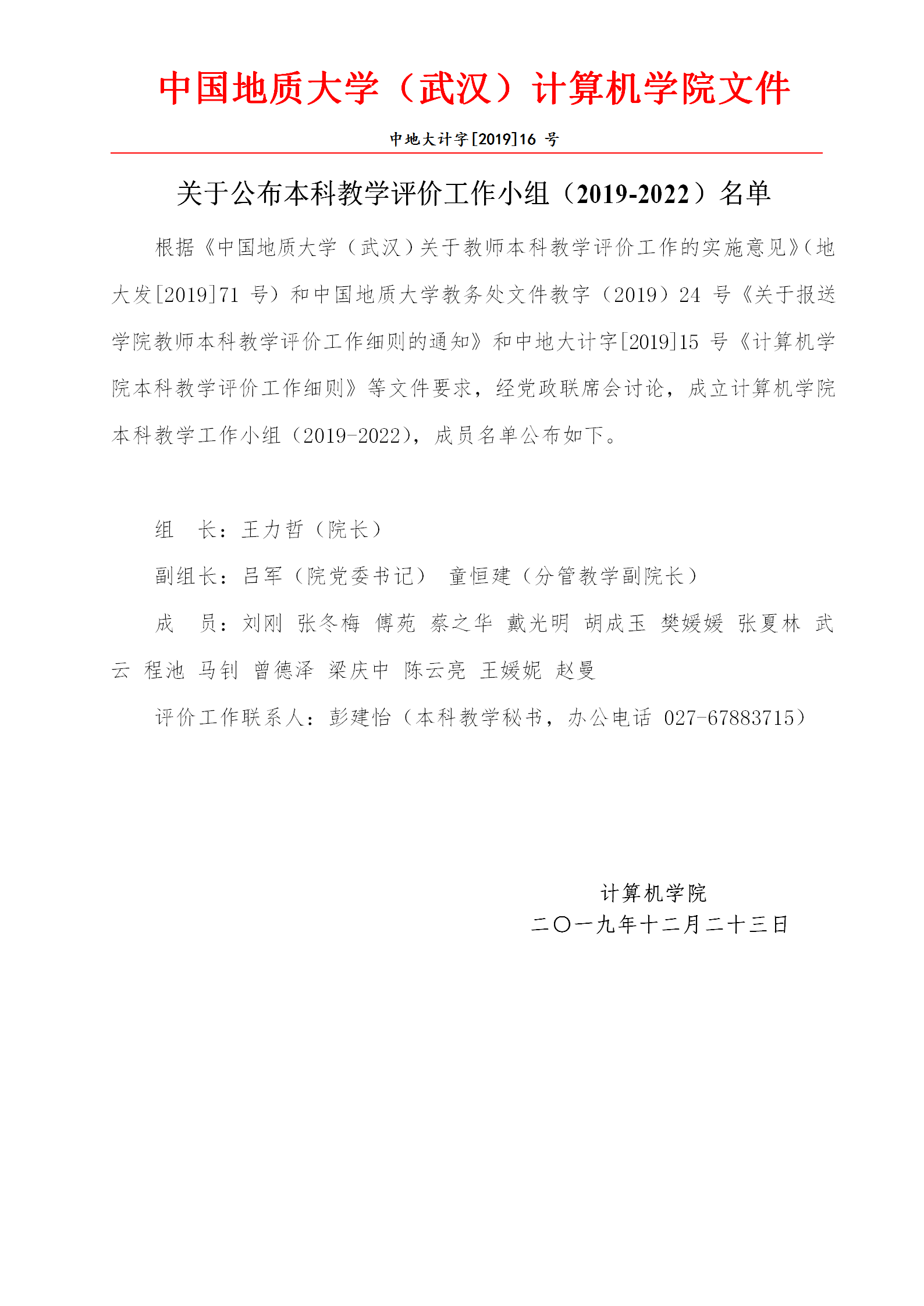 十大买球官方网站关于公布本科教学评价工作小组(2019-2022)名单