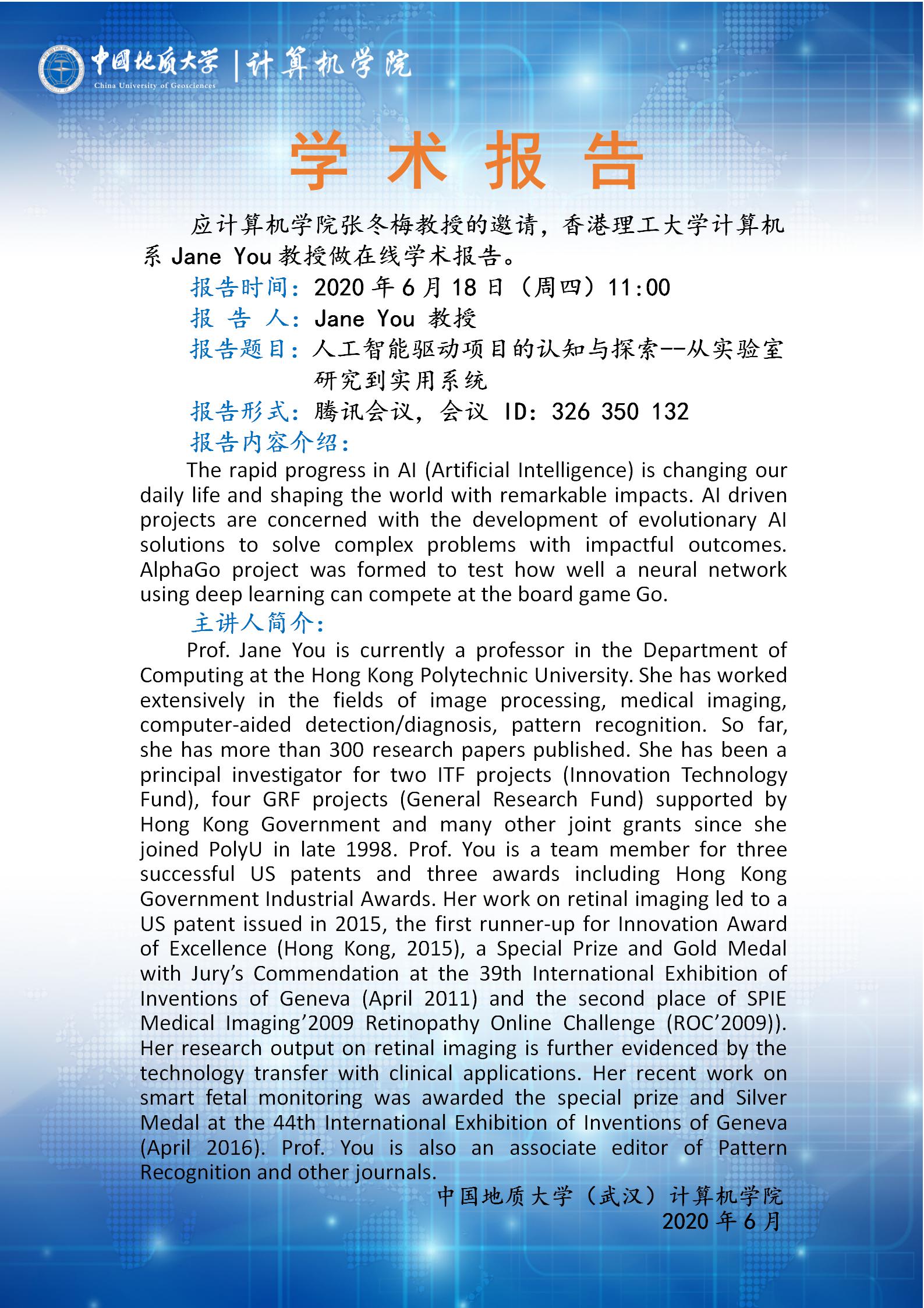 学术报告——香港理工大学计算机系尤佳教授:人工智能驱动项目的认知与探索--从实验室研究到实用系统