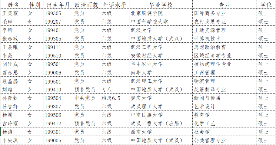 十大买球官方网站面向社会公开招聘工作人员已完成对报名人员资格审查,根据优先聘用条件(党员或预备党员+CET6或雅思6.5以上或专业4级以上+硕士)确定参加笔试人员名单如下(排名不分先后):
