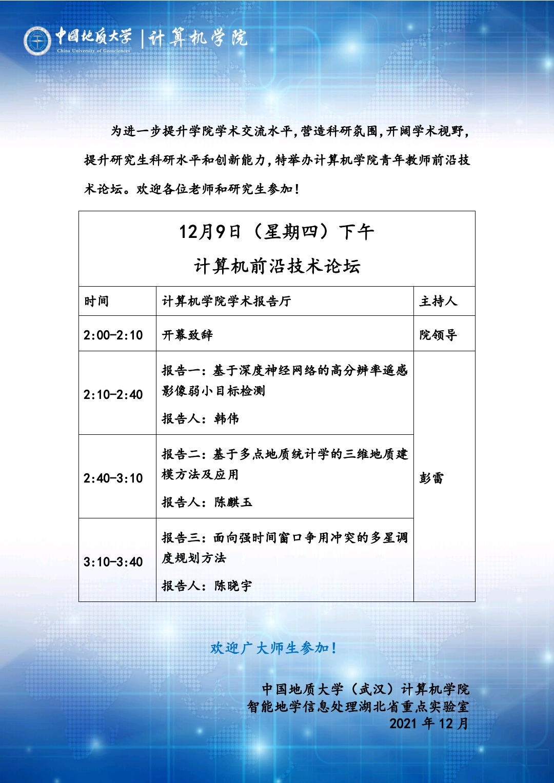 学术论坛:计算机前沿技术论坛