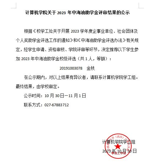 十大买球官方网站关于2023年中海油助学金评审结果的公示