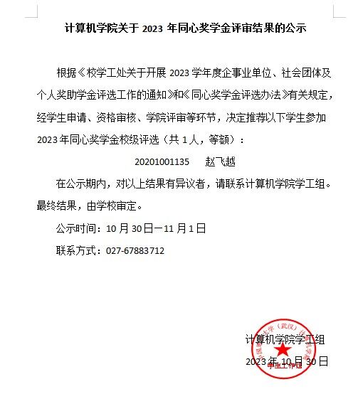 十大买球官方网站关于2023年同心奖学金评审结果的公示