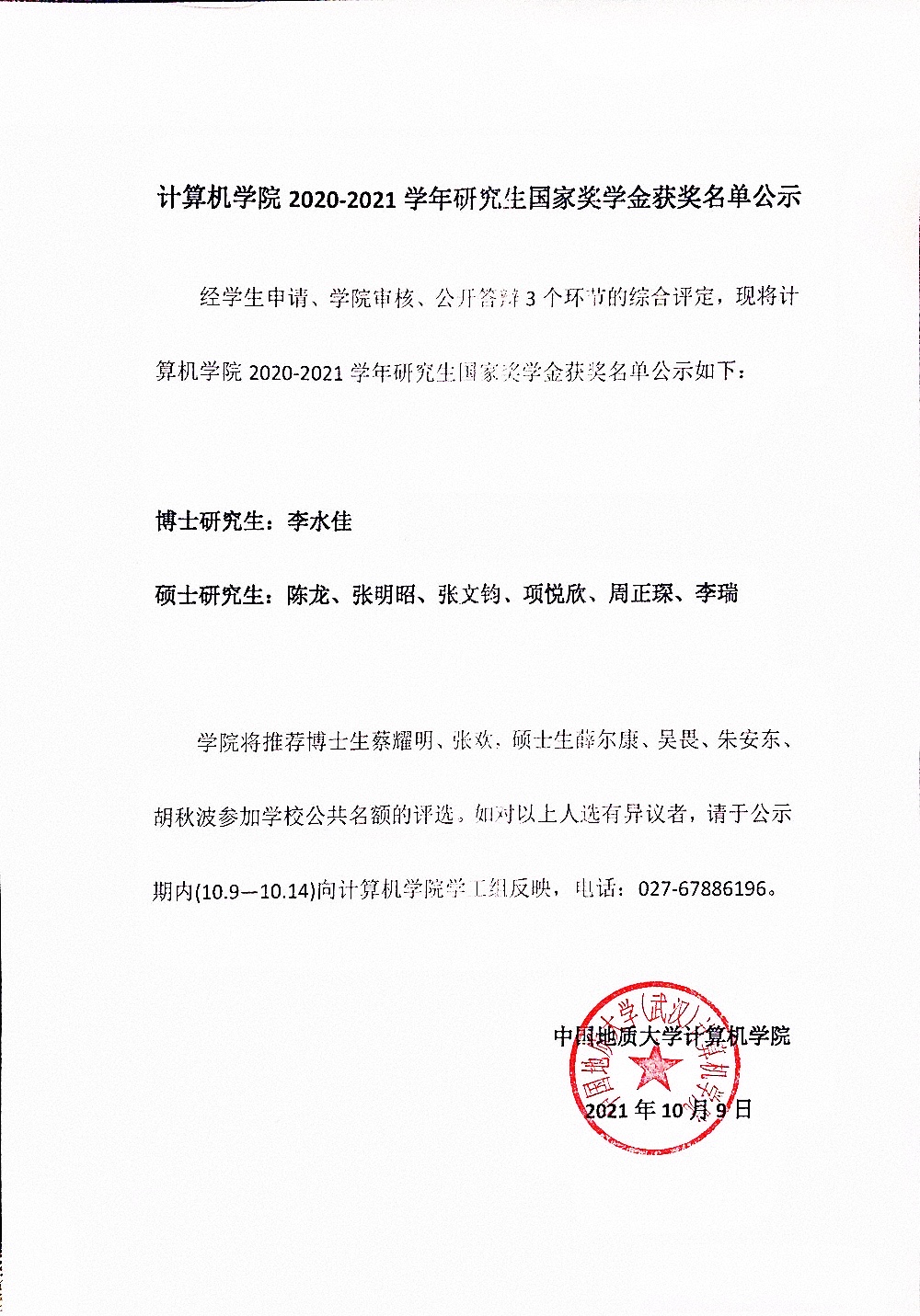 十大买球官方网站2020-2021学年研究生国家奖学金获奖名单公示