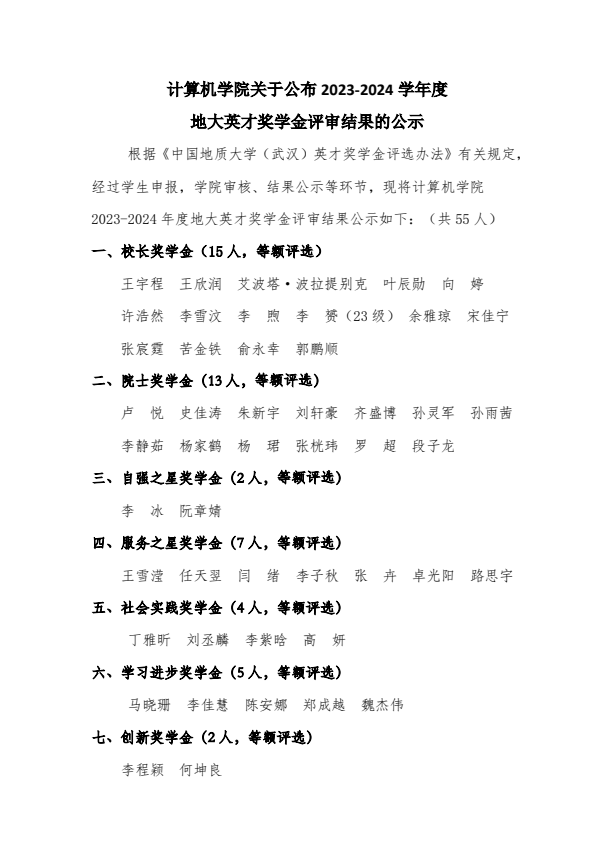 十大买球官方网站关于公布2023-2024学年度地大英才奖学金评审结果的公示