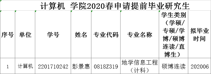 十大买球官方网站2020春申请提前毕业研究生公示
