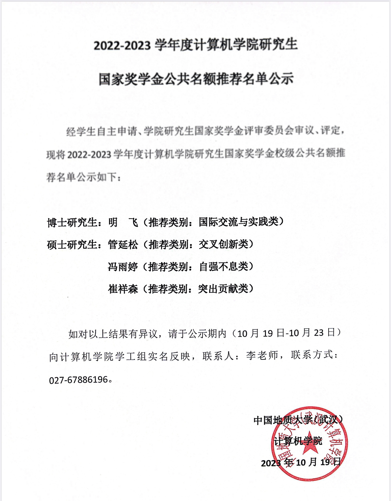2022-2023学年十大买球官方网站研究生国家奖学金公共名额推荐名单公示