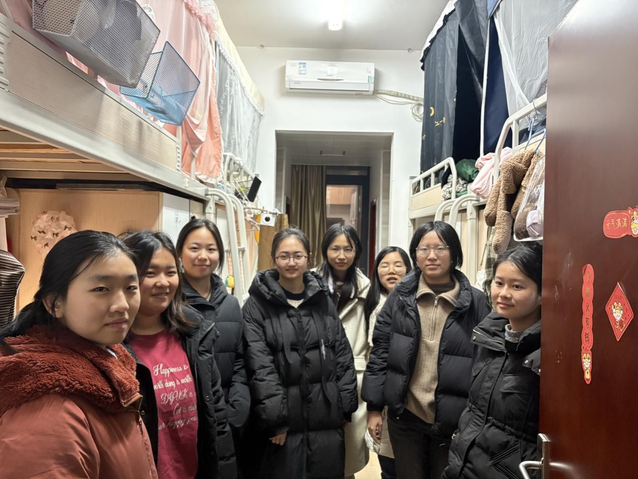 学院领导和老师们深入学生宿舍,与同学们亲切交谈,细致询问大家的假期生活、返校行程是否顺利、到校后的适应情况以及新学期的学习规划。李红丽关切地叮嘱同学们,要及时从假期氛围中收心聚力,尽快找回学习节奏,尽早树立明确目标,科学规划学业与个人发展,要以昂扬的姿态投入到新学期的奋斗中。林小艳勉励大家,要珍惜稍纵即逝的大学光阴,迅速完成从“假期模式”到“学习状态”的关键转换,要用饱满的热情和坚定的斗志去迎接成长路上的各项挑战。工会主席梁庆中温暖地表示,希望同学们珍惜在校的每一天,保持乐观向上的心态,锻造健康强健的体魄,遇到任何困难随时沟通,工会组织始终是同学们身后坚实的支撑与温暖的港湾。一句句暖心的话语,一次次真挚的交流,让同学们深切感受到了学院大家庭的关怀与温暖。