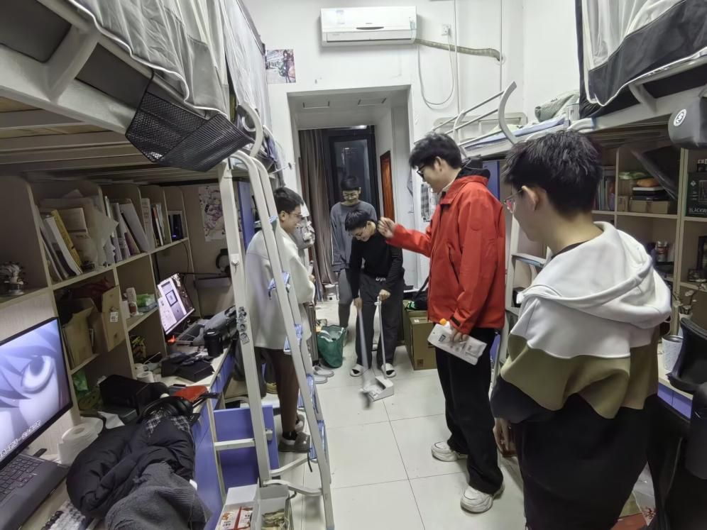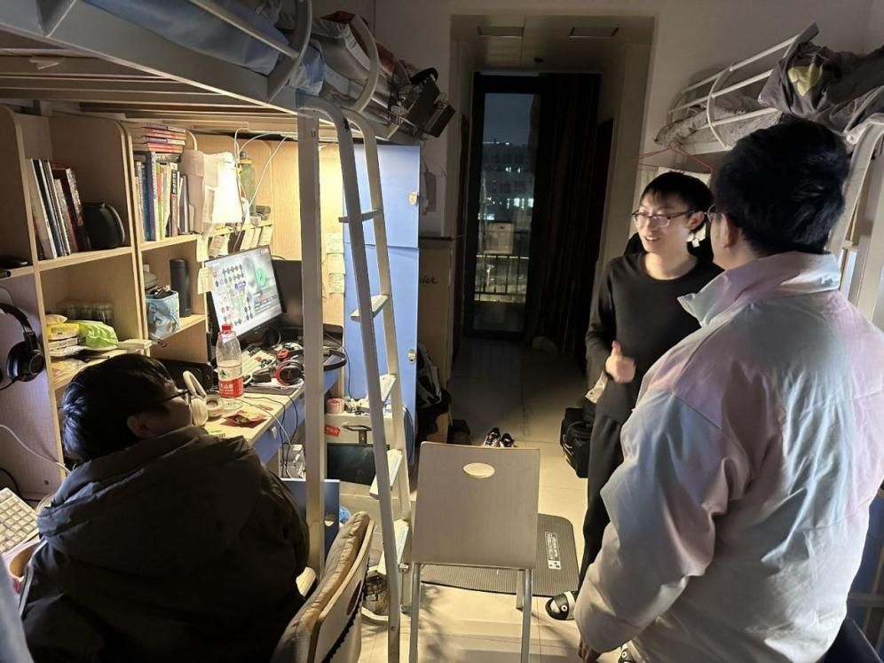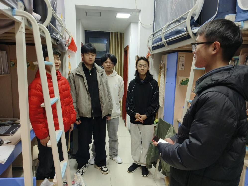 在亲切交流的同时,辅导员老师们也化身“安全卫士”与“生活管家”,对宿舍的安全卫生状况进行了细致排查。从用电规范到消防设施,从内务整理到卫生死角,老师们逐一查看、耐心指导,针对可能存在的安全隐患现场提出整改意见。“插排不要放在床头”“人走务必断电”“陌生链接不要点”——一句句朴实而具体的叮嘱,既是对规章制度的重申,更是对同学生命财产安全的高度负责。老师们还特别提醒同学们,春季是情绪波动的高发期,要关注自身心理健康,学会调适压力,保持积极乐观的心态,遇到困难及时向辅导员或学院寻求帮助,希望同学们共同维护安全、整洁、文明、和谐的宿舍环境。