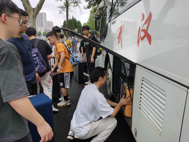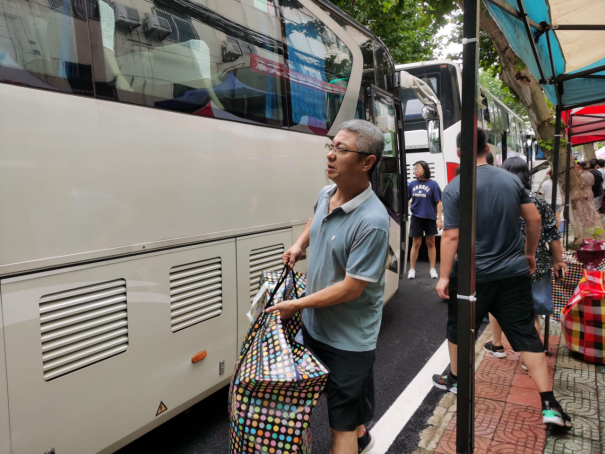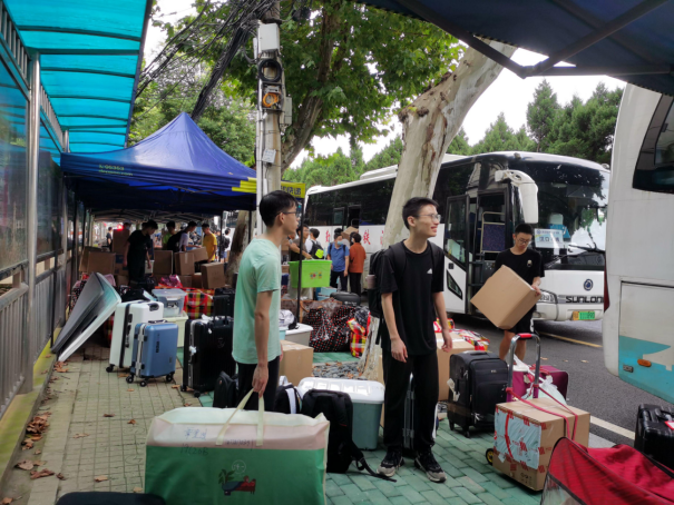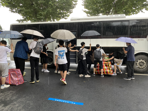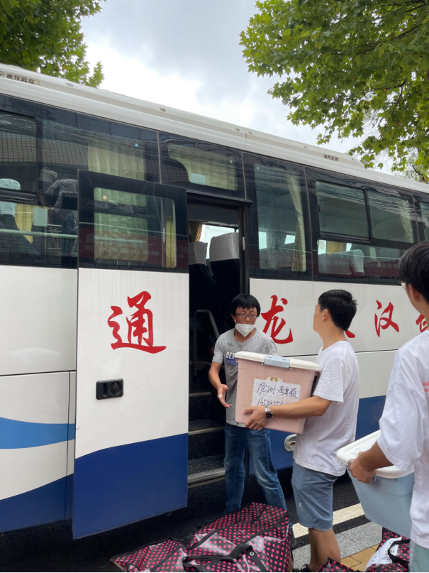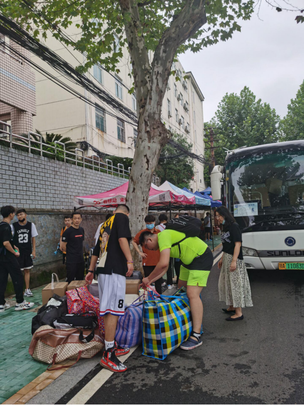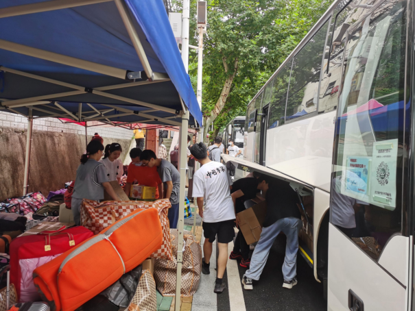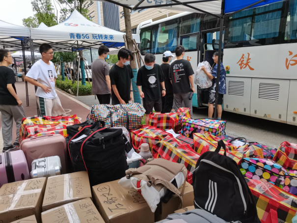 到场的负责的班主任、辅导员老师们组织学生有序进行搬迁。令人感动的是,各班班主任上午6点就提前到达乘车点,维持现场秩序,并积极地帮助学生搬运行李,很快完成了装车,顺利驶向未来城校区;