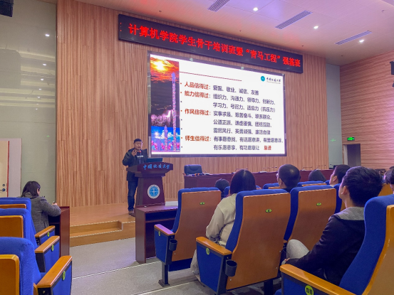 李国昌从个人目的和组织目的两个角度出发进行阐述:从个人层面,身为学生骨干要增加业绩,增长才干,增强信心,增添价值;从组织层面,身为学生骨干要干好工作,干出成绩,干出水平,干出特色。他还讲到,为何学生骨干,就是要做到三个“一”:一个聚焦,聚焦一流人才培养;一个任务,更好地组织学生宣传学生凝聚学生服务学生;一个目标,目标是培养一流人才。