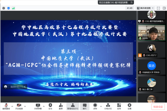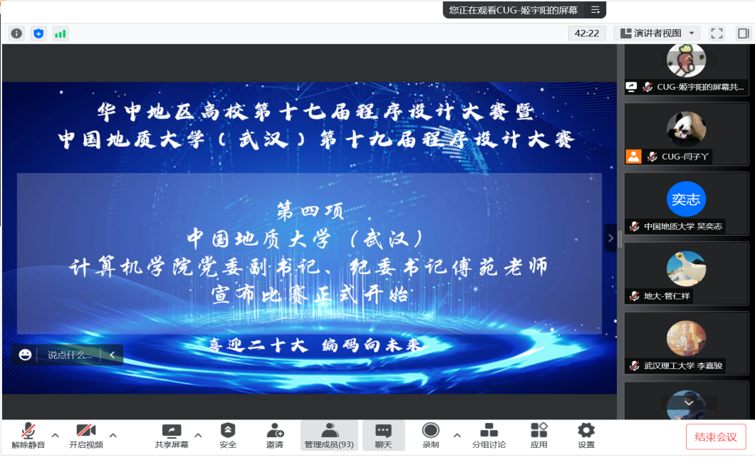 活动伊始,李国昌致开场辞。他代表地大十大买球官方网站向所有参赛选手表示欢迎,介绍了学院ACM系列活动开展情况和“ACM-ICPC”协会的发展历程,2021年协会突破历史,获得ACM-ICPC亚洲区域赛金奖。希望同学们在本次比赛中取得佳绩,在未来学习中立科技兴国之志,谋专业报国之实,争做时代先锋,为实现中华民族伟大复兴贡献青春力量。
