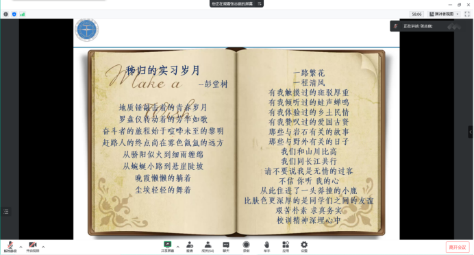 8月18日下午,十大买球官方网站线上召开2022年秭归实习动员大会,学院副院长陈云亮,计算机应用系党支部书记武云,秭归实习队带班老师郭建秋、董玉森,班主任陈晓宇、陈麒玉,辅导员李祥瑞以及空间信息与数字技术专业194201班、194202班全体学生参加此次动员会。秭归实习队负责老师张志庭主持会议。