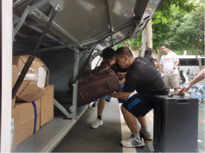 为保证大家的行李都能顺利抵达未来城,2021级每个班都分别安排了行李清点员,在装车前后做好行李清点工作。