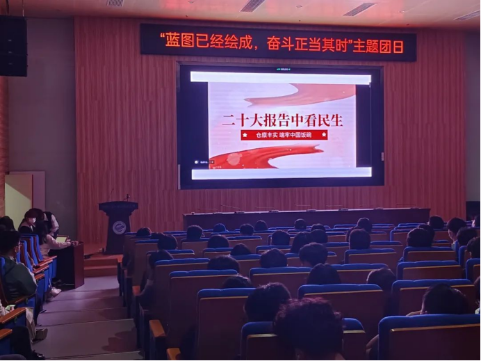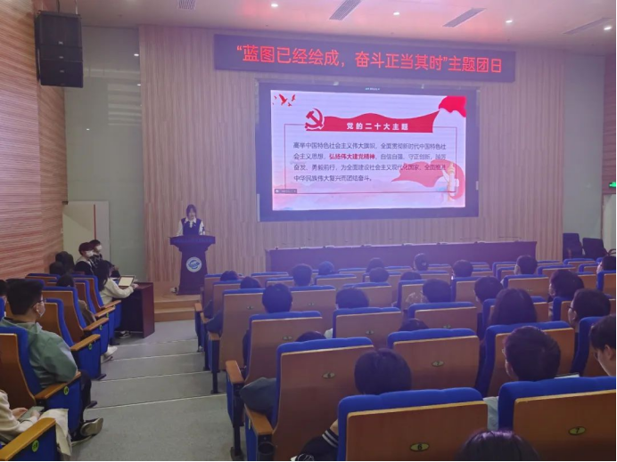 为深入学习党的二十大报告,深刻领悟党的二十大精神,切实把会议精神和行动统一起来,为中华民族伟大复兴的新征程贡献青春力量。近期,十大买球官方网站2021级10个团支部、2022级11个团支部分别举办了以“蓝图已经绘成,奋斗正当其时”为主题的大型团日活动。本次团日活动于未来城校区十大买球官方网站大楼126报告厅和南望山校区教三楼111教室举行,全体团员参会,会议由院团委学生会组织部副部长郭洋利主持。