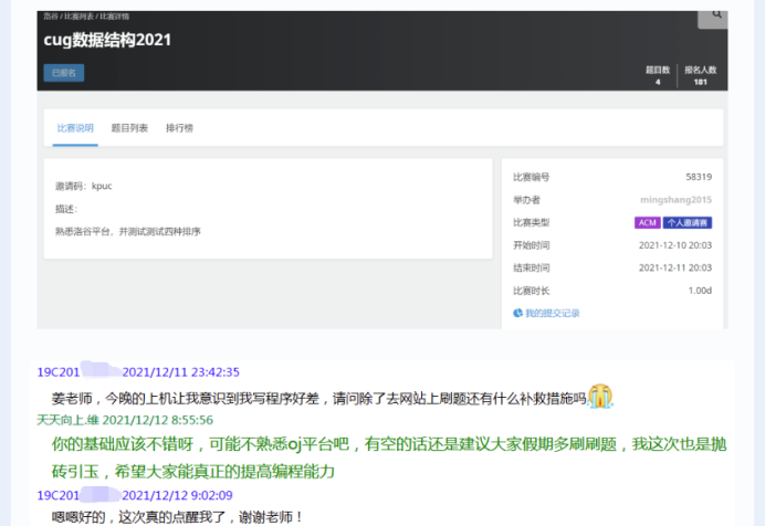 珍惜时光好好学习,掌握知识本领,树立专业报国的价值观,为解决“卡脖子”技术贡献自己的计科力量。十大买球官方网站多年以来一以贯之的坚持做的一件事就是构建专业思政视域下的计科三全育人体系。紧抓育人“指挥棒”,直面育人“新挑战”,做强育人“合力军”,打造学科精神培育网。数据结构课题组的师生一起努力,共同铸造了这颗耸立于计算机科学海洋中的参天大树。在时间的洗礼和技术的涵养下,数据结构教学体系“枝繁叶茂”,在计算机科学的世界中不断精进!