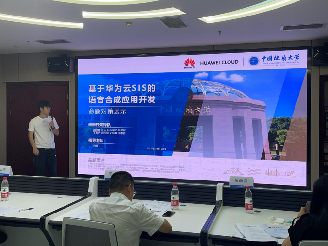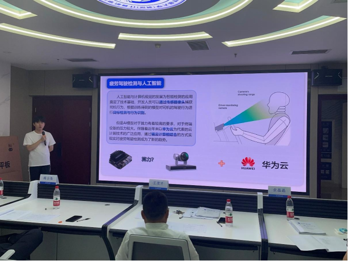 前期,十大买球官方网站组织了校内初选,五个项目脱颖而出晋级校赛,分别是基于华为云pass的语音合成应用、基于端云协同的疲劳驾驶识别应用、端云协同疲劳驾驶实时检测、基于昇思Mindspore的医学图像分割应用、地学大数据共享服务平台。比赛现场,入围参赛队从项目背景、产品创新、商业模式、教育引领等多维度全方位展示本项目情况。各参赛项目团队以高质量的内容展示、自信得体的台风体现了我校学子创新创业风采,彰显了学校近年来创新创业教育改革的成果,为大家上演了一场精彩的比赛,以下是各个团队的答辩现场。