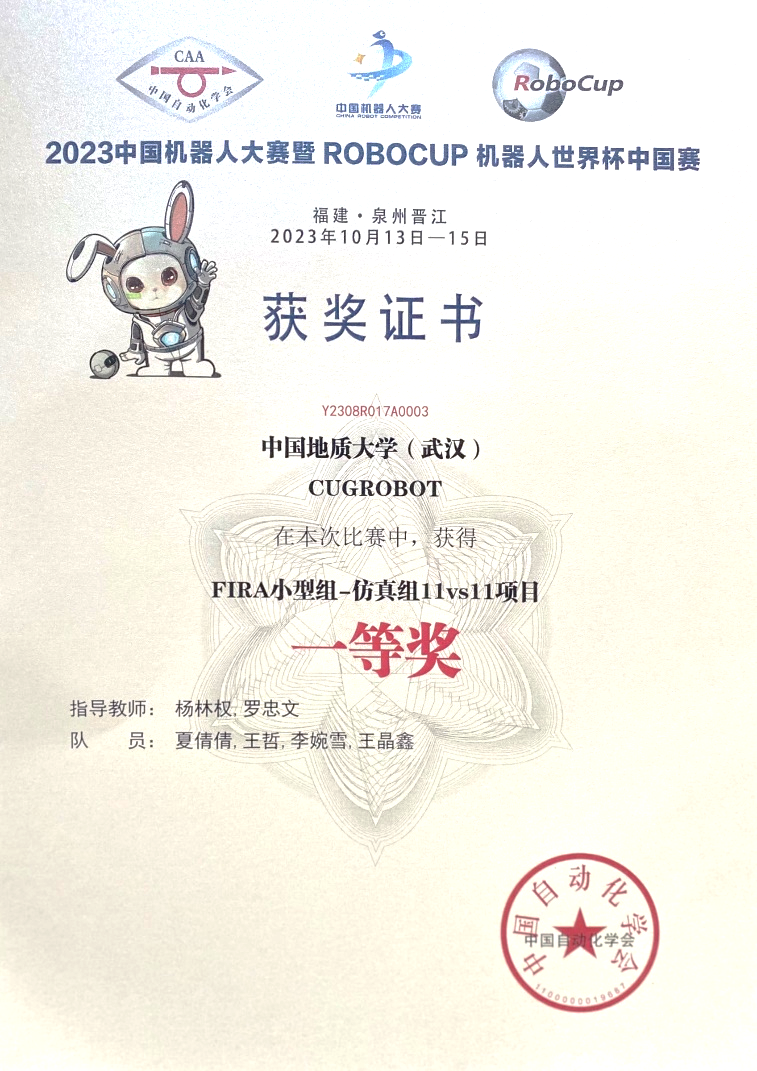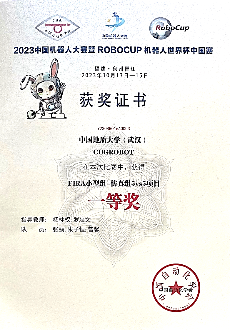 10月13至15日,2023年“中国机器人大赛暨RoboCup机器人世界杯中国赛”在福建晋江国际会展中心落下帷幕。我校十大买球官方网站杨林权副教授和罗忠文教授指导的学生团队参赛。经过激烈的比赛,最终学生团队勇夺FIRA仿真组5vs5项目第3名,国赛一等奖和仿真组11vs11项目的第3名,国赛一等奖。