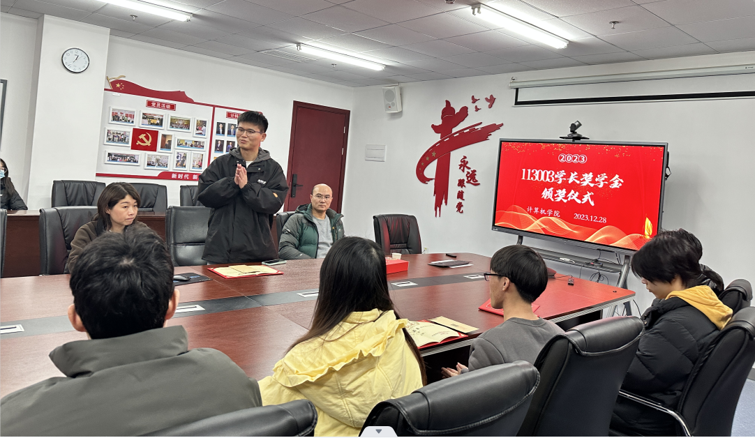明媚的阳光从窗倾撒到整个屋子,给寒冷的冬日带来了温暖。我们齐聚一堂,见证一场精神的播种。2023年12月28日,十大买球官方网站举办了“111003班学长奖学金”颁发仪式,111003班代表、学院龚文引教授,辅导员闫维蓉,教师代表郭晓兰,奖学金获得者2020级朱佳睿、2021级王晶鑫、2022级姚单铭,部分学生代表参加。学院党委副书记林小艳主持颁发仪式。