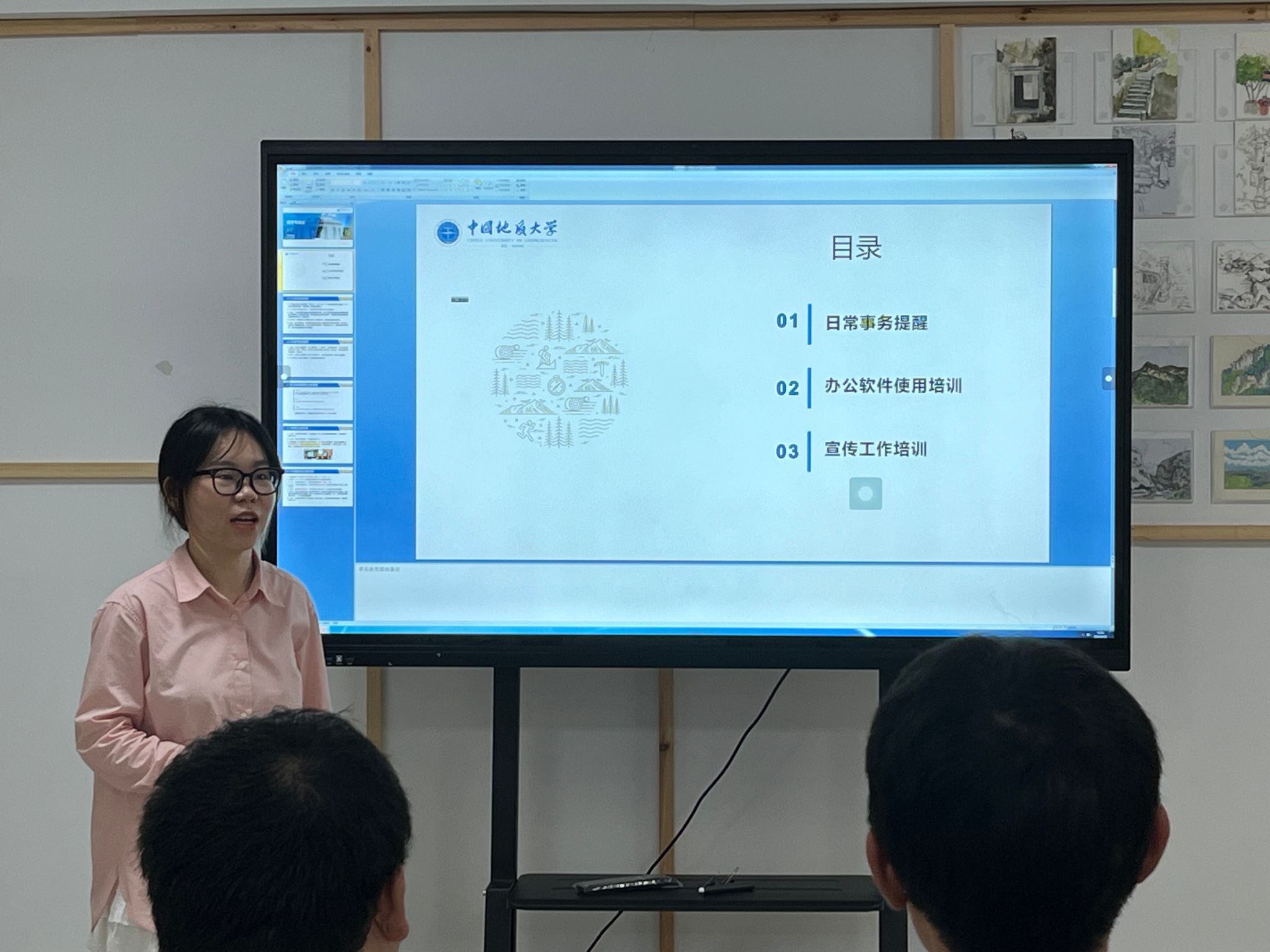 兼辅史莹莹从日常事务、办公能力、宣传技能三个方面进行培训。在日常事务方面,她提醒助管们要了解学院各种信息和年级基本情况,熟悉各类工作流程和基本规范,及时沟通,工作中既要遵守规范,又不能过于固化,这样才能更好地为同学们服务;在办公能力提升方面,对word、ppt、excel三个办公软件的使用规范都做出了相应的要求;在宣传技能方面,她从构图角度、亮度调整及拍摄技巧等方面详细地讲解了如何拍摄高质量照片,同时还分享了通讯稿撰写经验,结合案例讲述了行文结构、配图及排版等基本要求。